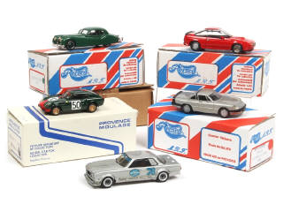 réalisation en résine & métal - comprend les modèles : ALFA ROMEO, ASTON MARTIN, JAGUAR & MERCEDES - manque un enjoliveur de roue - on y retrouve les marques : RECORD, PROVENCE MOULAGE & MINICHAMPS (distribué par WESTERN MODELS) - BELLES REALISATIONS !