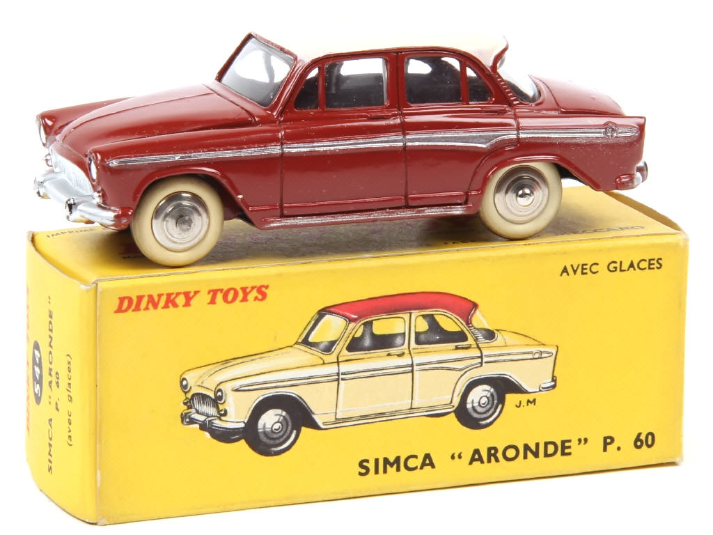 DINKY TOYS (FRANCE) 544 SIMCA ARONDE P60 (version avec jantes convexes) brique, toit crème