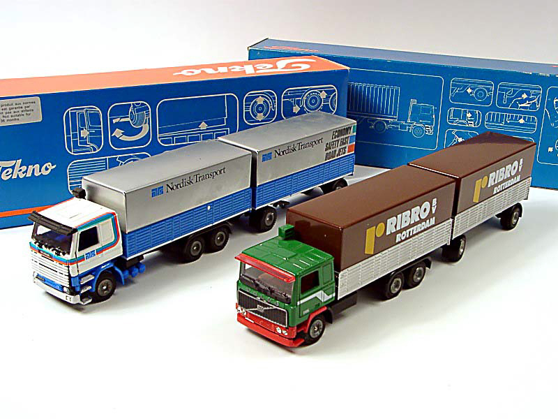 TEKNO (PAYS-BAS) VOLVO F1025 Camion bâché avec remorque 'RIBRO' marron, vert & gris métal