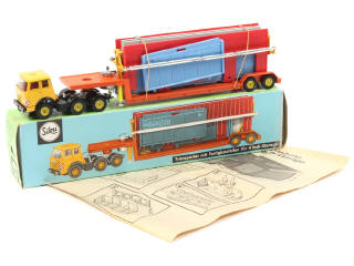 SIKU (ALLEMAGNE) V307 HENSCHEL Semi-remorque surbaissée avec garage à monter jaune & orange