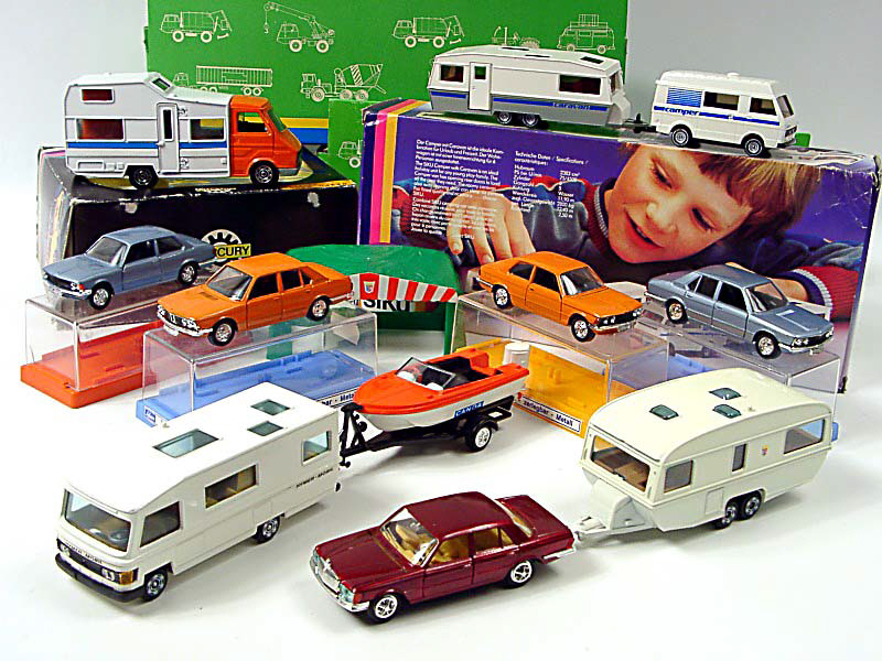 GAMA (ALLEMAGNE) 96983 MERCEDES HYMER Mobile 650 camping car avec canot à moteur sur remorque blanc, noir & orange
