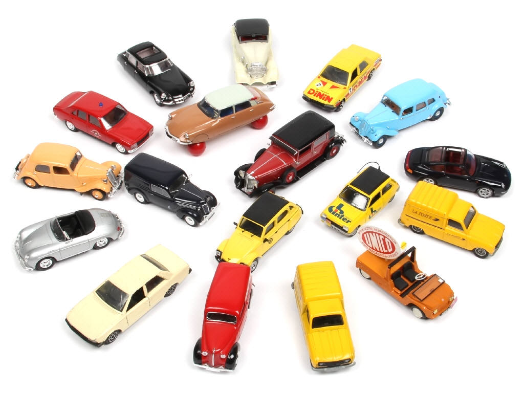 on y retrouve notamment les marques : MINICHAMPS, SOLIDO, UNIVERSAL HOBBIES, NOREV & DEL PRADO - possibilités de quelques petits éléments cassés & manquants