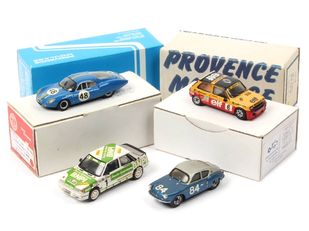 kits montés - miniatures reproduisant les modèles : RENAULT & ALPINE - on y retrouve notamment les marques : PROVENCE MOULAGE & MINI RACING - possibilité de petits accessoires manquants - une boîte en état 'c'