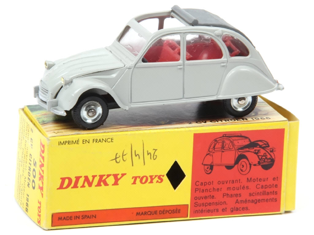DINKY TOYS (FRANCE) 500 CITROËN 2CV Décapotée (made in SPAIN) gris clair, jantes chromées