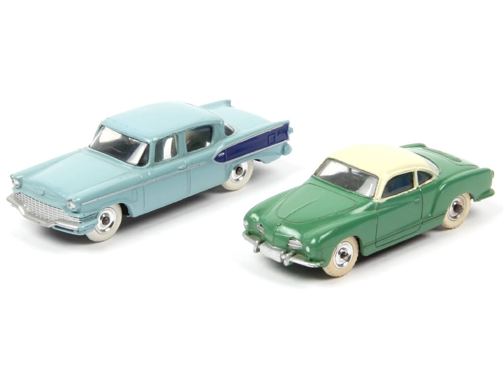 comprend : STUDEBAKER PRESIDENT (état 'C' proche de l'état 'B' avec pneus non conformes) & VOLKSWAGEN KARMANN GHIA (état 'B' avec quelques petites retouches sur le toit, pneus séchés dont un coupé)