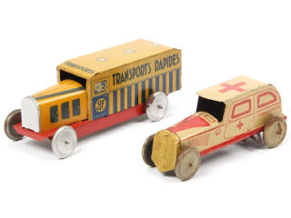 DIVERS (FRANCE) Ensemble de 2 véhicules en tôle lithographiée