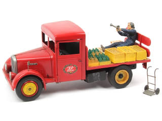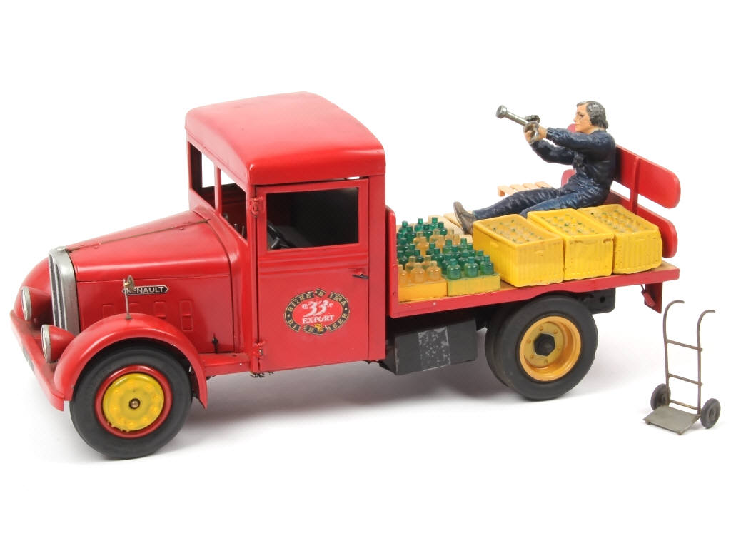 longueur 42,5 cm - avec moteur à pile (non testé), direction, phares électriques & accessoires - quelques petites parties manquantes, cassées dont certaines à recollées - BELLE REALISATION SUR BASE C.I.J. !