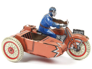 SFA PARIS (FRANCE) Moto avec side-car en tôle lithographiée brique clair & bleu