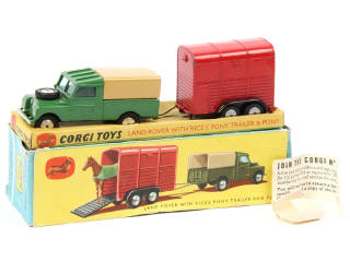 CORGI TOYS (GB) GS2 LAND ROVER avec remorque à poney vert, marron & rouge