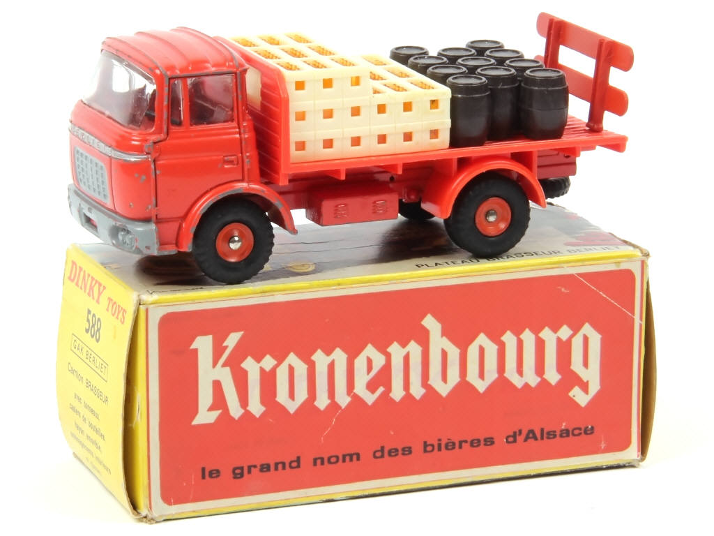 DINKY TOYS (FRANCE) 588K BERLIET GAK Brasseur 'KRONENBOURG' rouge orangé, plateau orange