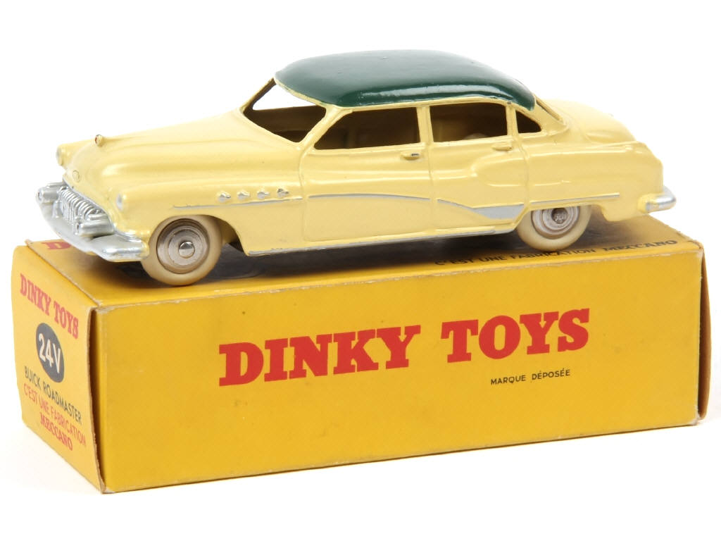 DINKY TOYS (FRANCE) 24V BUICK ROADMASTER (version avec intérieur de toit quadrillé & jantes chromées) jaune paille, toit vert
