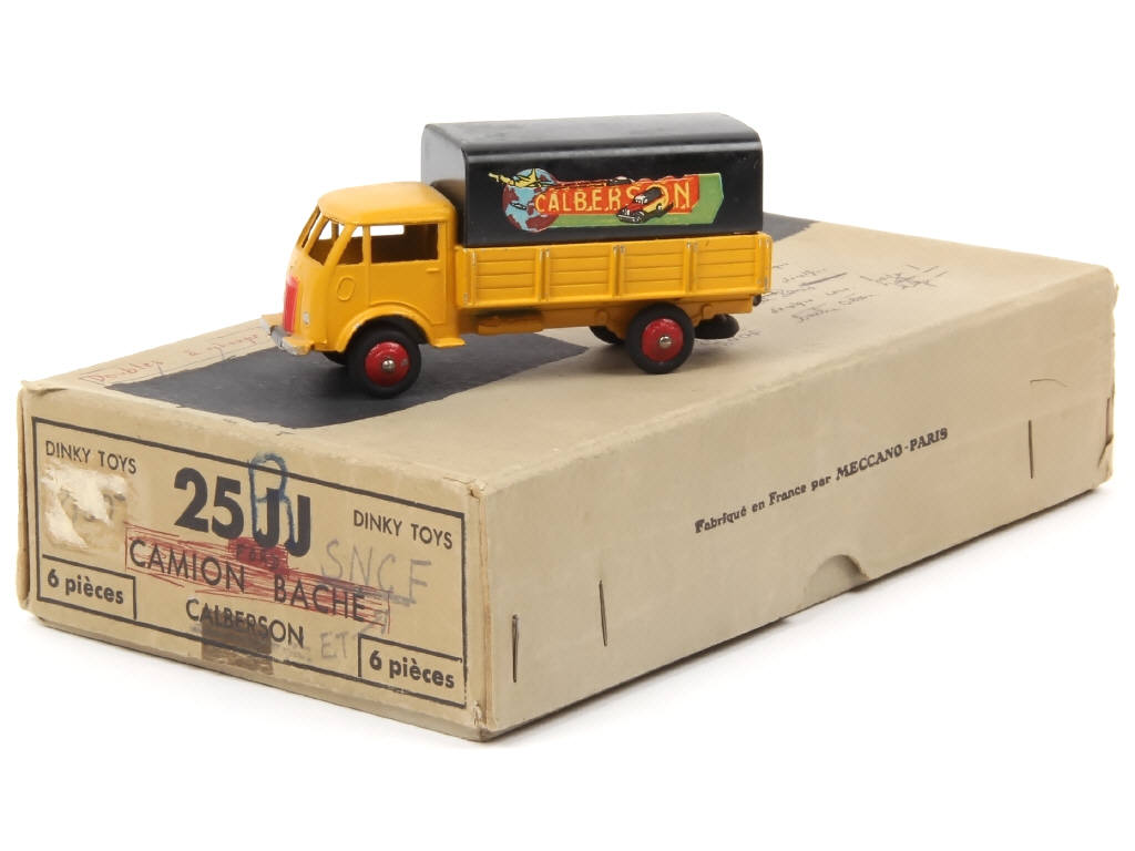 DINKY TOYS (FRANCE) 25JJ FORD Bâché 'CALBERSON' (avec cabine type 2 & roues à pneus 'M' 3ème version) jaune & rouge