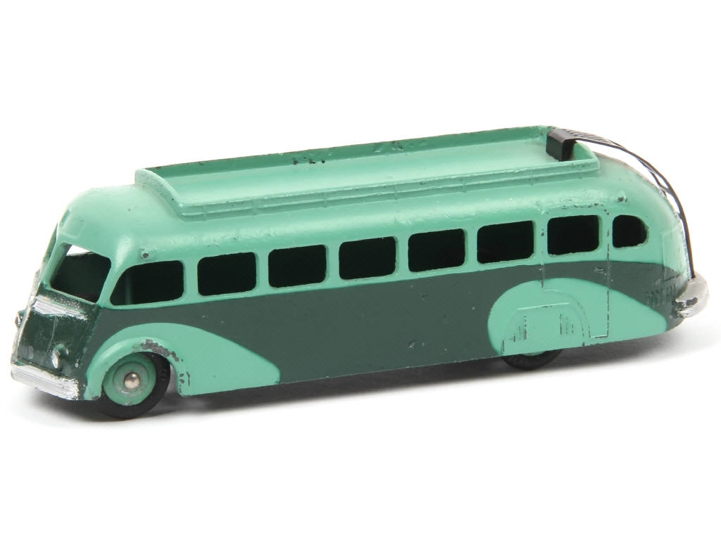 DINKY TOYS (FRANCE) 29E Autocar ISOBLOC (version avec galerie lisse & ailes au pochoir) 2 tons de vert
