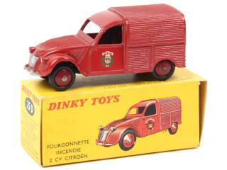 DINKY TOYS (FRANCE) 25D CITROËN 2CV Fourgonnette de pompiers rouge, jantes convexes bordeaux