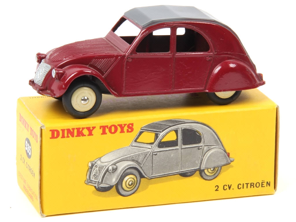DINKY TOYS (FRANCE) 24T CITROËN 2CV (version avec 3 feux arrière) grenat, jantes crème & capote gris mat