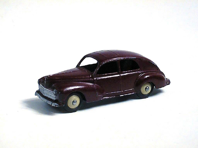 DINKY TOYS (FRANCE) 24R PEUGEOT 203 Petite lunette arrière (version avec intérieur de toit lisse & feu de stop) chocolat, jantes crème