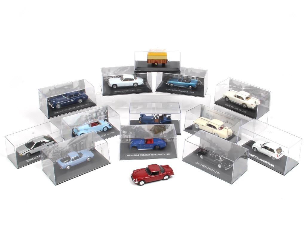 véhicules vendus en kiosque - comprend notamment les modèles : BRASIER, CHENARD & WALCKER, CITROEN, RENE BONNET DJET, FACEL VEGA & DELAHAYE - possibilité de petits éléments cassés - quelques boites en état 'c' (un modèle sans)
