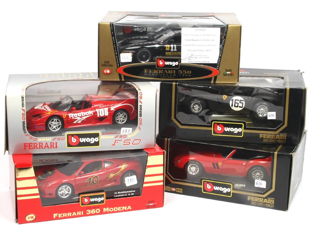 échelle 1/18ème - comprend les modèles : F50, 250 GTO, 360 MODENA & 550 MARANELLO GT N.A.R.T. 1996 (serie limitée 01/10 exemplaires) - quelques accrocs sur les boites & blisters