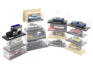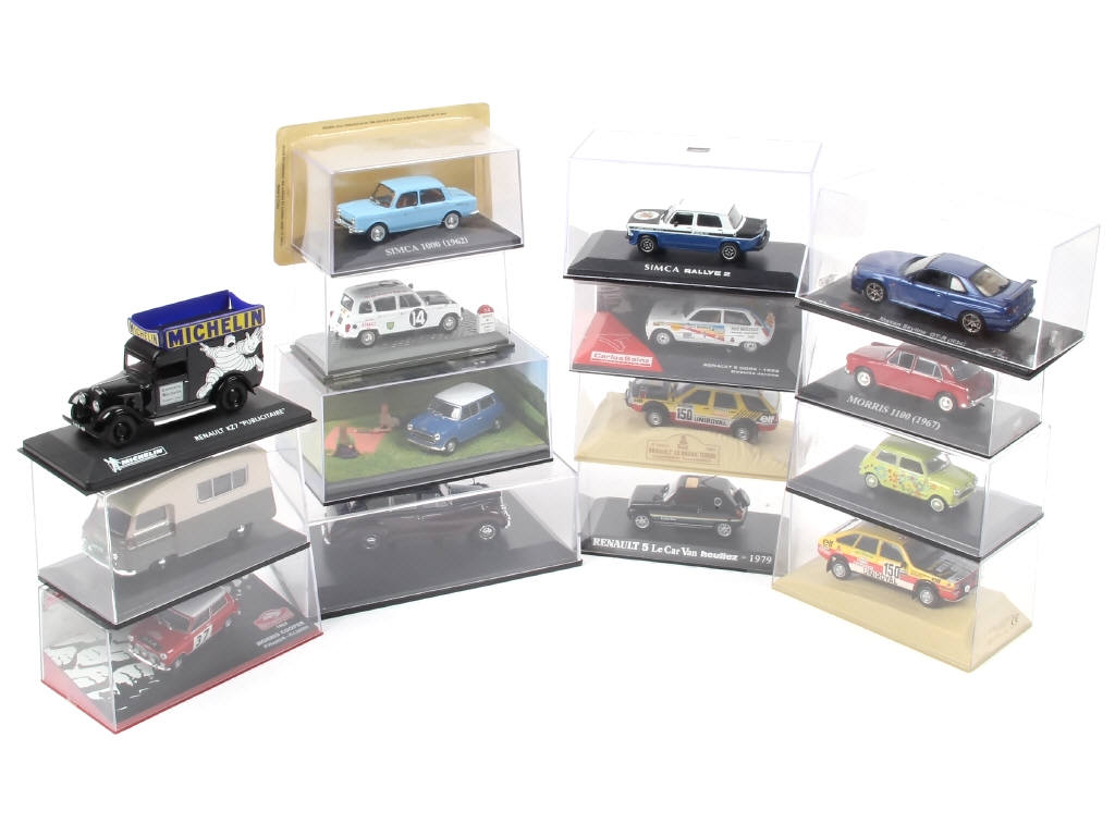 distribués en kiosque - miniatures reproduisant notamment les modèles : RENAULT (un exemplaire avec couvercle de boîte manquant), SIMCA, MINI, DAIMLER & MORRIS