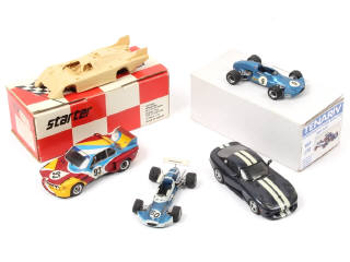 miniatures reproduisant les modèles : DODGE, ALPINE, BMW (état 'B' avec quelques craquelures sur les décalques) & PORSCHE - on y retrouve notamment les marques : STARTER (kit à monter semble complet), TENARIV (un exemplaire avec aileron à positionner) & PROVENCE MOULAGE - 3 exemplaires sans boîte