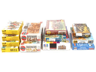 différentes échelles - semblent complets - on y retrouve notamment les marques : HÄT (références 8001, 8014, 8032 & 8033), ITALERI (références 6022 & 6860), AIRFIX (références 04581 & 04585), REVELL & ZVEZDA - quelques boites avec accrocs