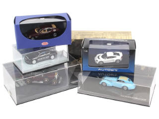 miniatures reproduisant les modèles : LOTUS, BENTLEY, BUGATTI, MERCEDES & ALFA ROMEO - on y retrouve les marques : MINICHAMPS & AUTOART - 2 exemplaires en série limitée - quelques accrocs sur les suremballages (2 manquants)