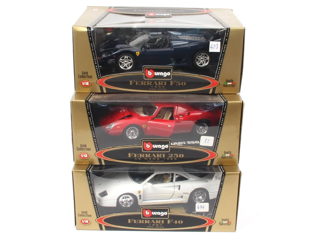 échelle 1/18ème - comprend les modèles : F40, F50 & 250 - quelques accrocs sur les boîtes (blisters plus ou moins déchirés)