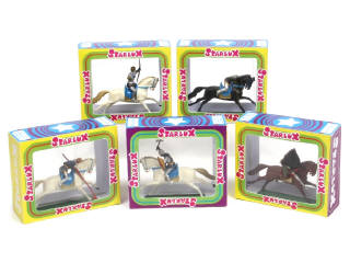 comprend : lance (dont un avec cape) & armure (avec épée, hache & arc) - quelques frottements sur certains exemplaires - boites copie