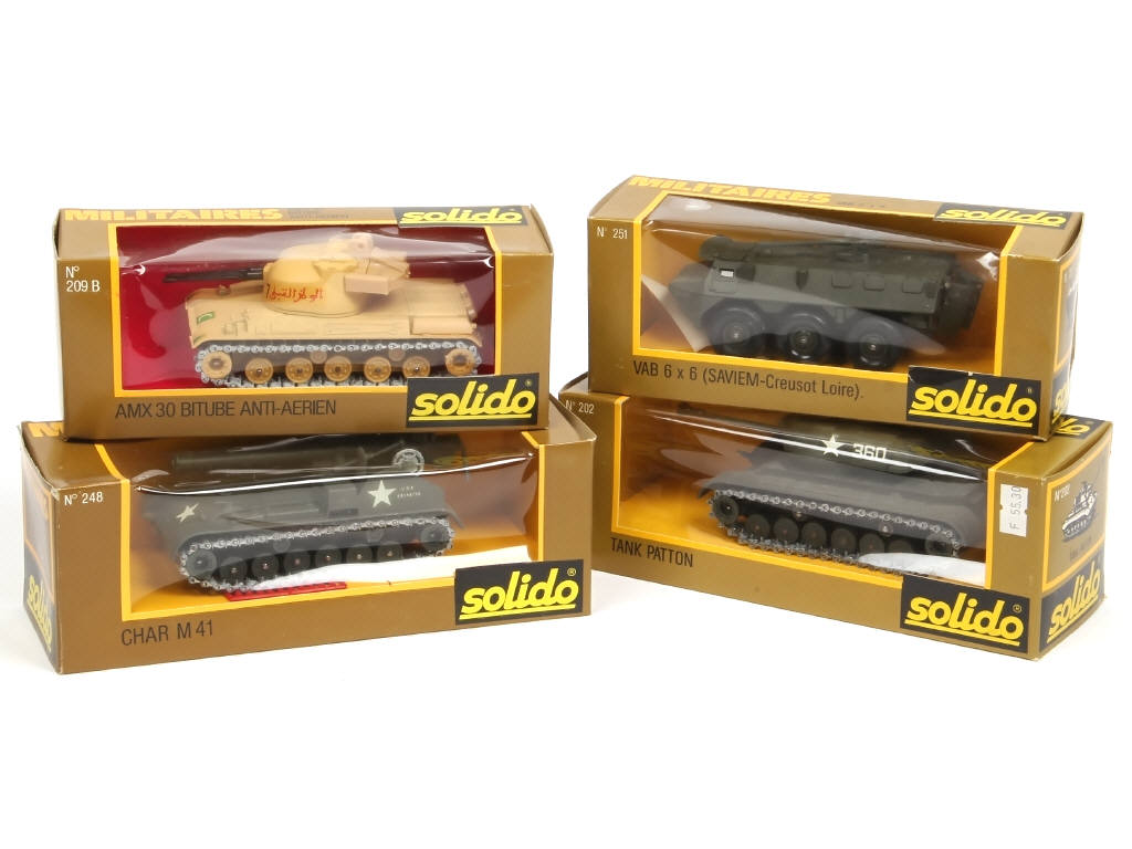 comprend les notamment modèles : AMX, VAB, PATTON & M41 - quelques traces d'humidité sur les chenilles & les boites