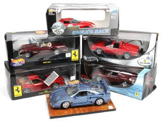 échelle 1/18ème - comprend les modèles : DINO 246 GTS, 250 GTO Le Mans 1964, 250 GT, 550 MARANELLO & F40 - un modèle sans boite - manque quelques cales) - on y retrouve les marques : MATTEL, UNIVERSAL HOBBIES & BBURAGO