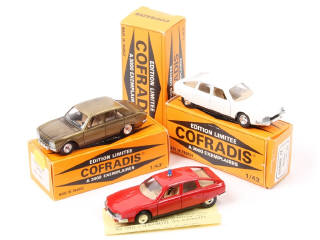 série limitée à 3000 exemplaires pour COFRADIS (distributeur de jouets) - comprend : PEUGEOT 504 & CITROËN CX (2 exemplaires) - avec notices & 2 planches de décalques (dont une incomplète) - quelques accrocs sur les boîtes