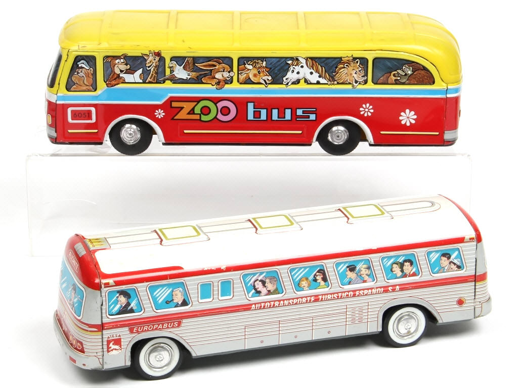 longueur environ 30 centimètres - moteurs à friction (fonctionnent) - on y retrouve les marques : RICO & PAYA - quelques frottements & éclats sur un exemplaire & légère déformation à l'avant de l'autre