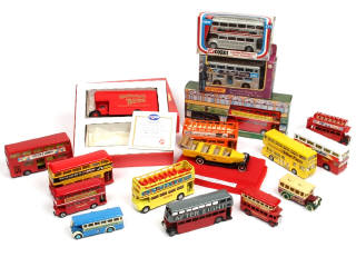 on y retrouve notamment les marques : DINKY TOYS, LLEDO, MATCHBOX & CORGI TOYS - avec petits manques & parties cassées sur certains exemplaires - quelques modèles en boite (en états de 'b' & 'd')