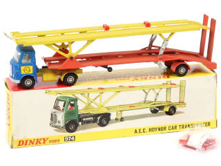 DINKY TOYS (GB) 974 A.E.C. Transporteur de voitures bleu métal, jaune & orange