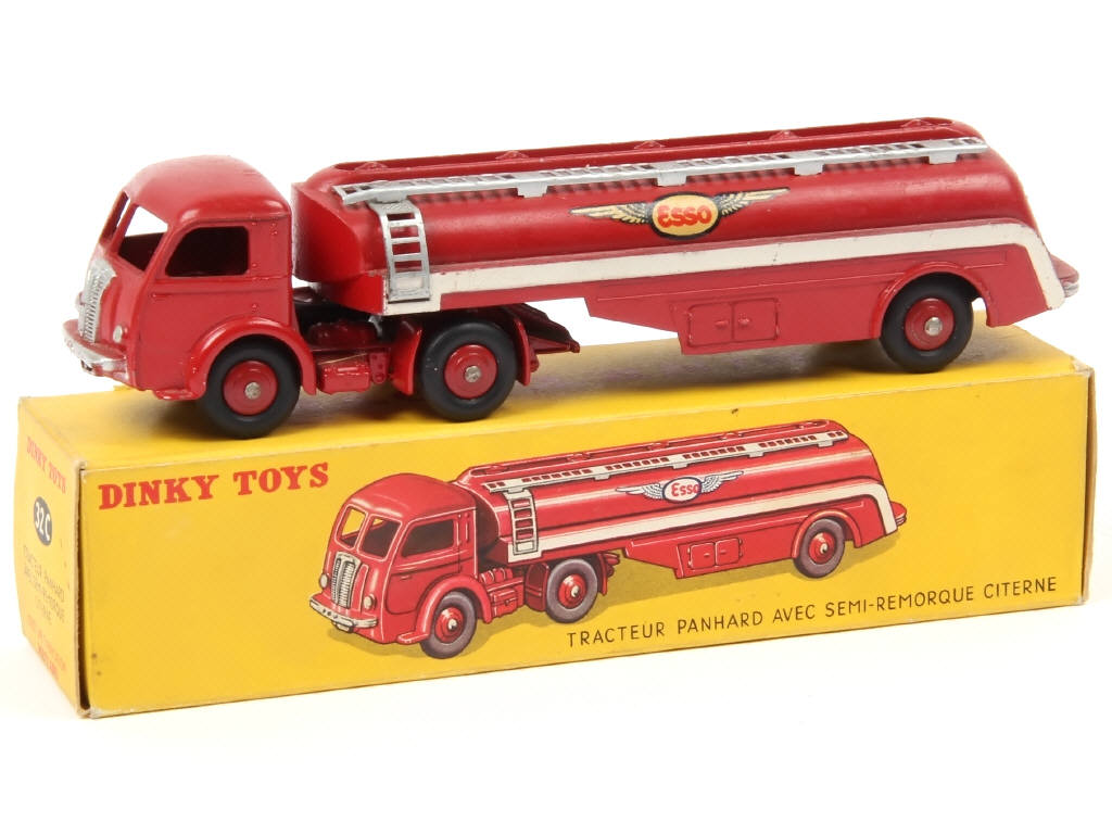 DINKY TOYS (FRANCE) 32C PANHARD Semi-remorque citerne 'ESSO' (version avec jantes convexes) rouge (décalques 'ailes moyennes')