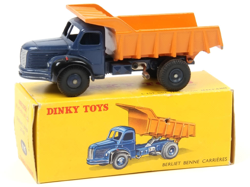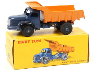 DINKY TOYS (FRANCE) 34A BERLIET Benne carrière MARREL (version avec jantes convexes) bleu foncé & orange