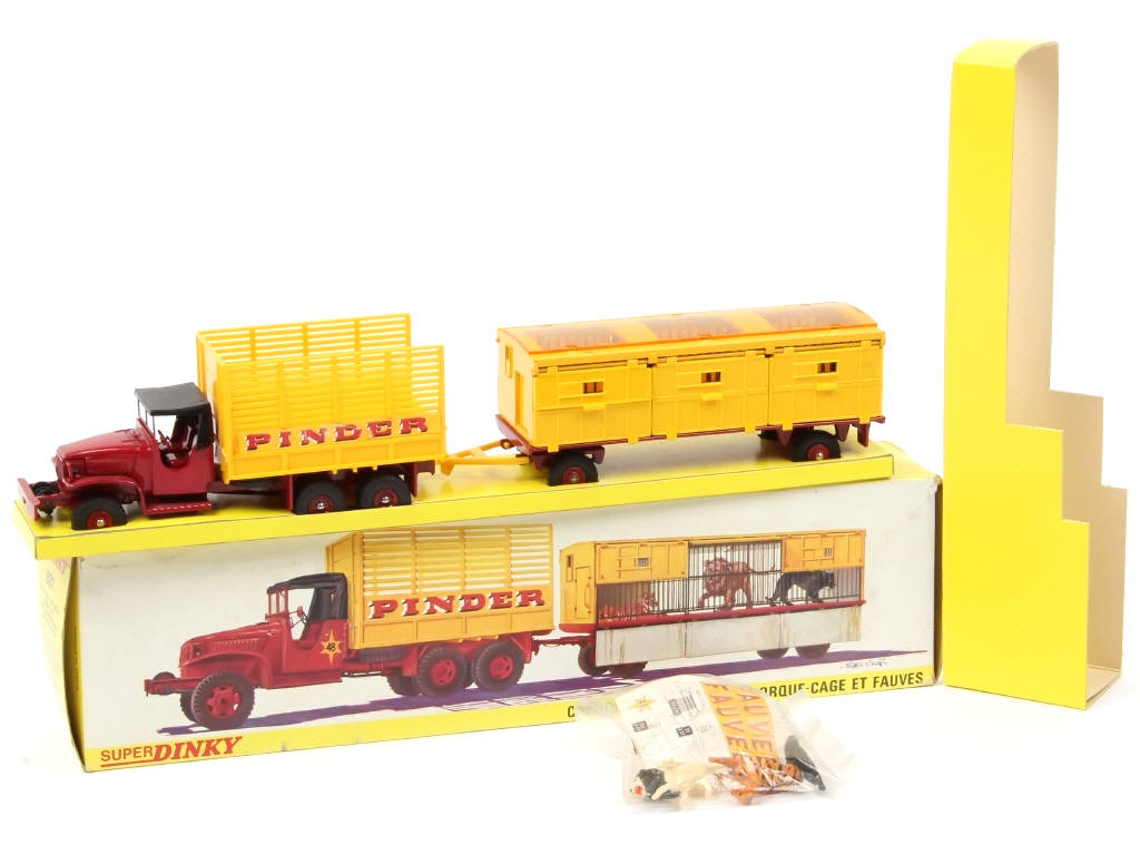 DINKY TOYS (FRANCE) 881 GMC 'PINDER' avec remorque-cage à fauves rouge & jaune