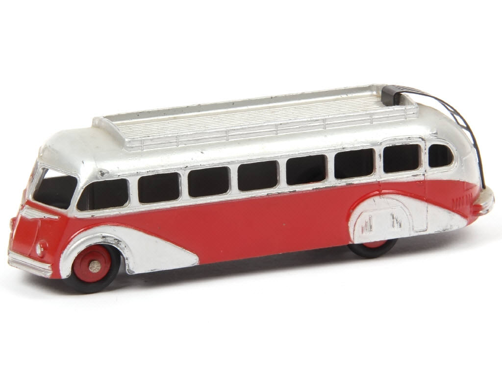 DINKY TOYS (FRANCE) 29E Autocar ISOBLOC (version avec galerie striée) rouge & argent