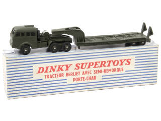 DINKY TOYS (FRANCE) 890 BERLIET Transport de char (version avec jantes du tracteur & de la remorque convexes) kaki