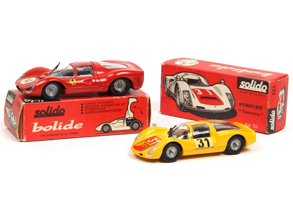 comprend : FERRARI 330 P3 (quelques micro-éclats) & PORSCHE CARRERA 6 (petits manques sur certains décalques) boites en état 'b'