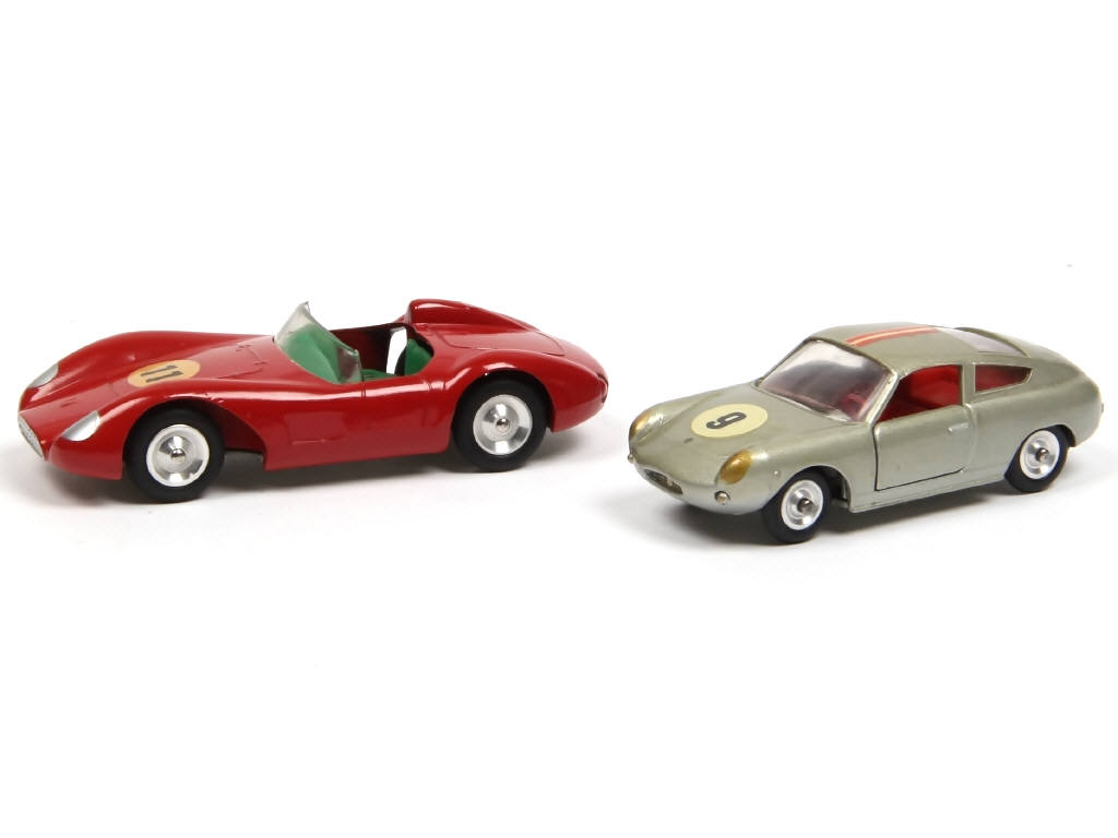 comprend : FERRARI 500 TRC (manque pilote) & FIAT ABARTH 1000 (transformation du tableau de bord & parties intérieures des portières repeintes - peinture noire & argent sur le plancher à un endroit - un décalque ajouté)