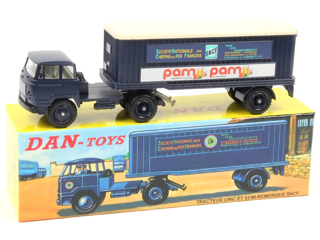 DAN-TOYS (FRANCE) 004 UNIC Semi-remorque 'S.N.C.F PAM PAM' bleu foncé, toit crème