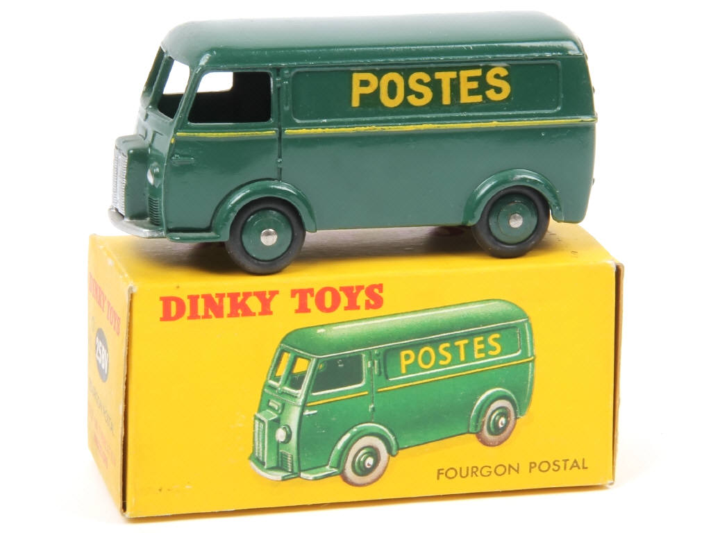 DINKY TOYS (FRANCE) 25BV PEUGEOT D3A 'POSTES' (version avec inscriptions en décalques & 2ème type) vert foncé