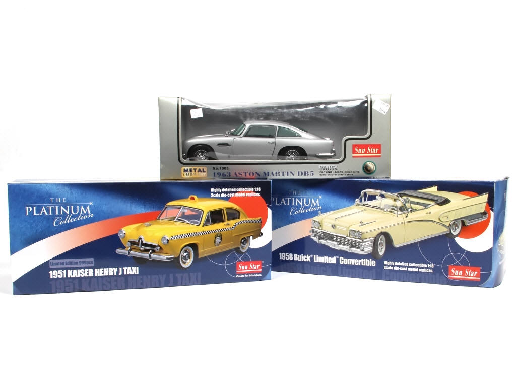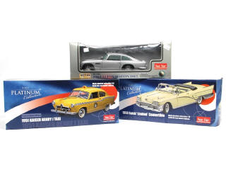 comprend : ASTON MARTIN DB5 1963, KAISER HENRY J TAXI 1951 (avec certificat d'édition limitée numéroté 383/999 exemplaires) & BUICK CONVERTIBLE 1958