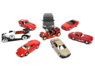 différentes grandes échelles - comprend les modèles : PEUGEOT, FERRARI (dont une avec portes bloquées) & MERCEDES - on y retrouve les marques : BBURAGO, SOLIDO, NACORAL & MIRA