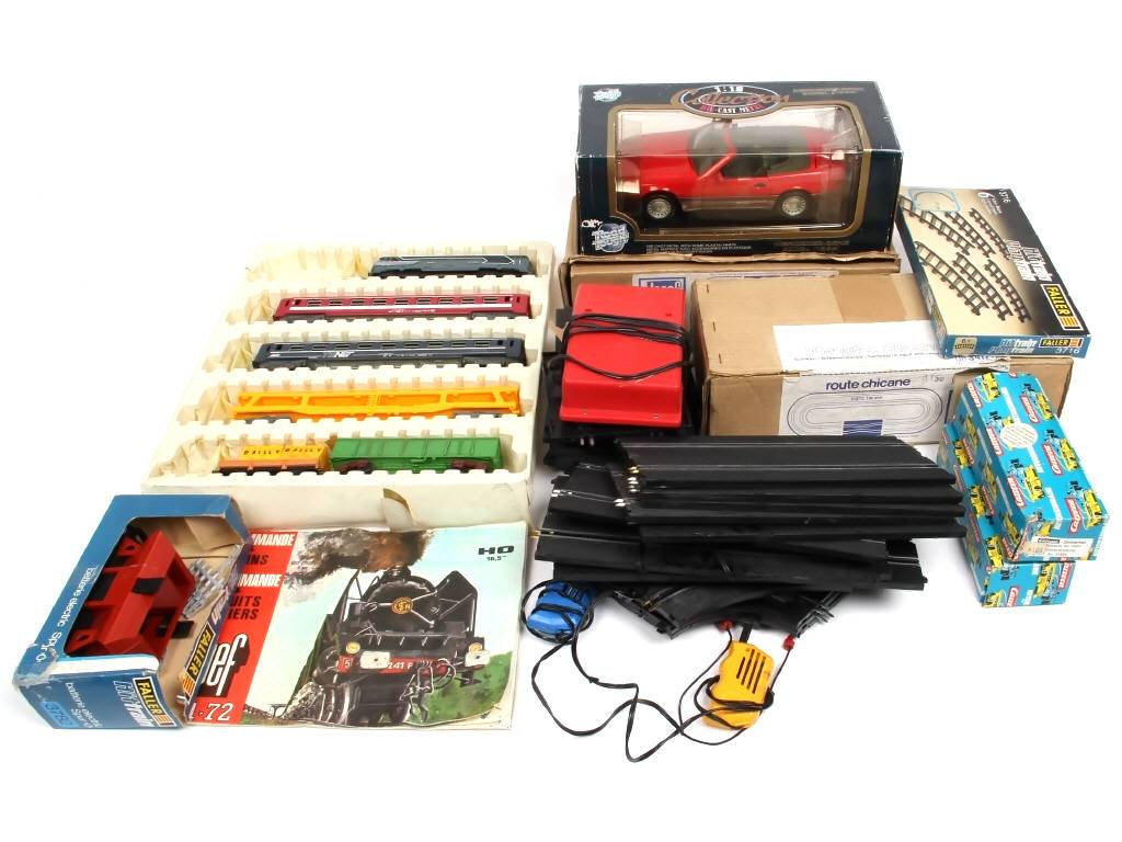 DIVERS Ensemble de 6 matériels ferroviaires, d'une voiture, d'éléments de circuit & accessoires