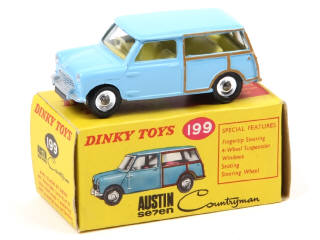 DINKY TOYS (GB) 199 AUSTIN SEVEN COUNTRYMAN bleu ciel & woody, intérieur jaune