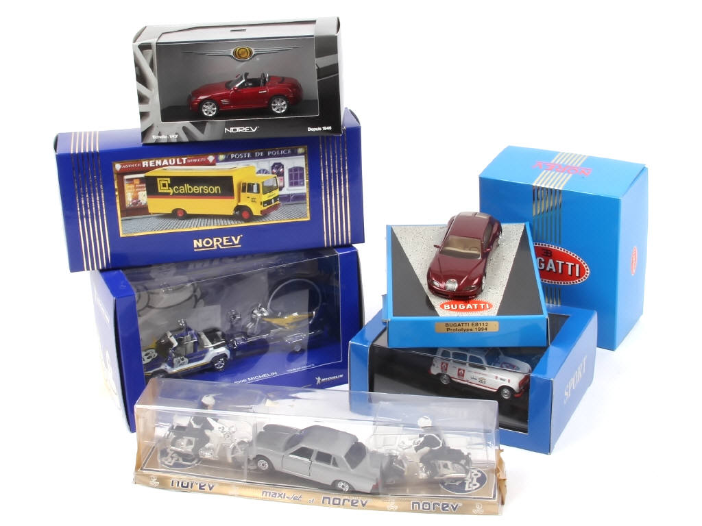 miniatures reproduisant notamment les modèles : BUGATTI, RENAULT & MEGA - les boîtes sont en états de 'a' à 'c' - possibilité de petits accessoires manquants