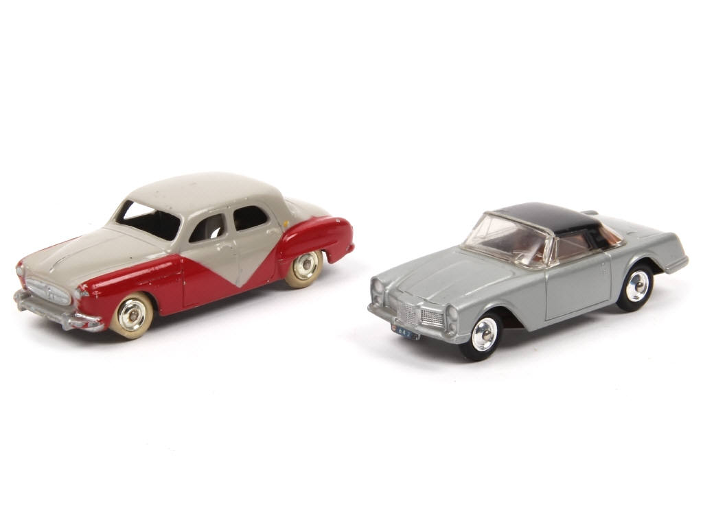 comprend : FACEL VEGA FACELLIA (état 'A-', une fixation de hard-top cassée, manquante & remplacée, 3 petits décalques ajoutés) & RENAULT FREGATE (état 'D', proche de l'état 'C', pneus séchés & plus ou moins déformés)