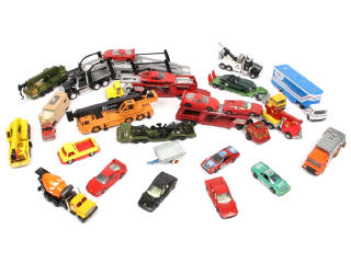 on y retrouve notamment les marques : MAJORETTE, MATCHBOX, POLISTIL & CORGI TOYS - avec manques & parties cassées